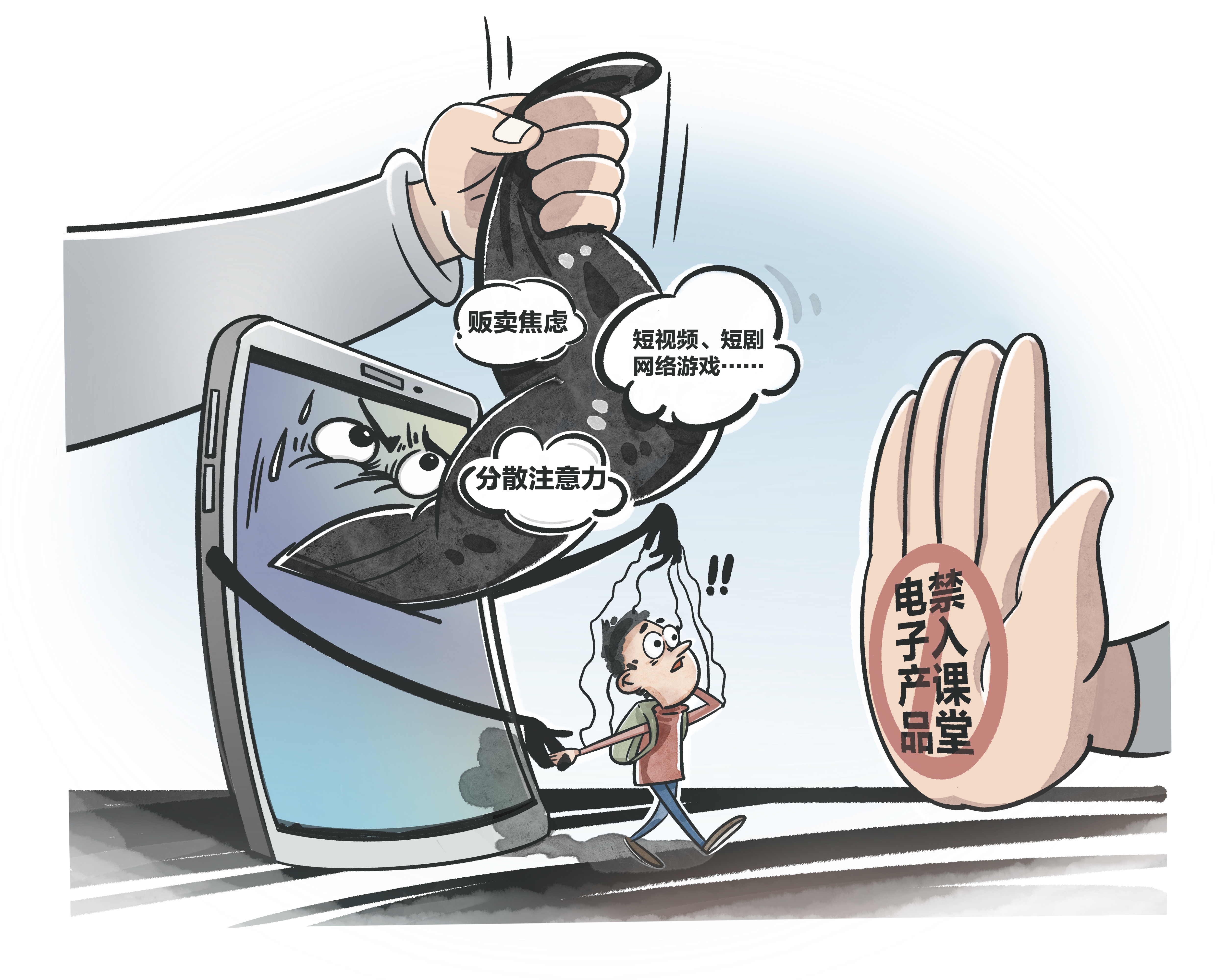 智能手机深刻改变了人们的生活工作方式,也帮助未成年人打开了网络新世界。但对于心智尚未发展健全的中小学生来说,在最应该沉迷学习的年龄,很可能被互联网的花花世界所吸引,进而沉迷其中、不能自拔,结果可能是荒废学业,影响身心健康。